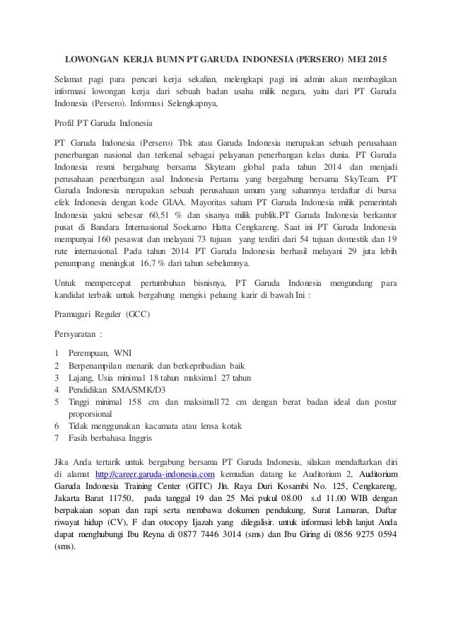 Lowongan Kerja Bumn Pt Garuda Indonesia Persero Tahun 2016 Rekrutmen Lowongan Kerja Bulan Maret 2021