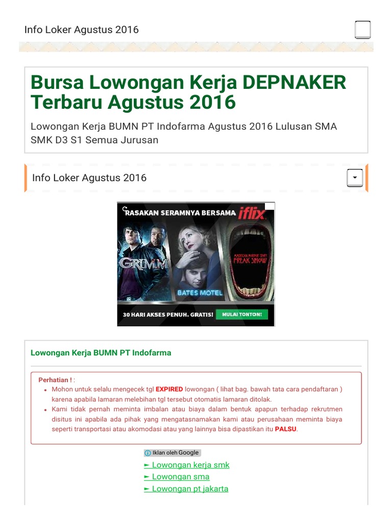 Lowongan Kerja Bumn Pt Indofarma Agustus 2016