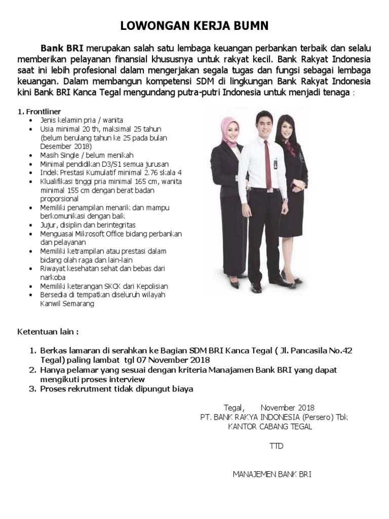 Lowongan Kerja Bumn Bank Bri Merupakan Salah Satu Lembaga Keuangan Perbankan Terbaik Dan Selalu