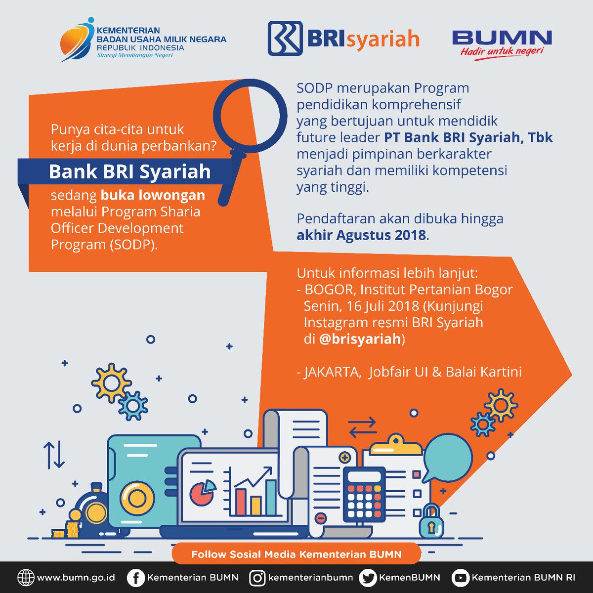 Kementerian Bumn در توییتر Selamat Pagi Sobatbumn Ada Yang Ingin Bekerja Di Bank Bumn Bank Bri Syariah Anak Perusahaan Dari Bankbri Id Kembali Membuka Lowongan Pekerjaan Nih Yuk Kepoin Informasinya Di Sini Semoga